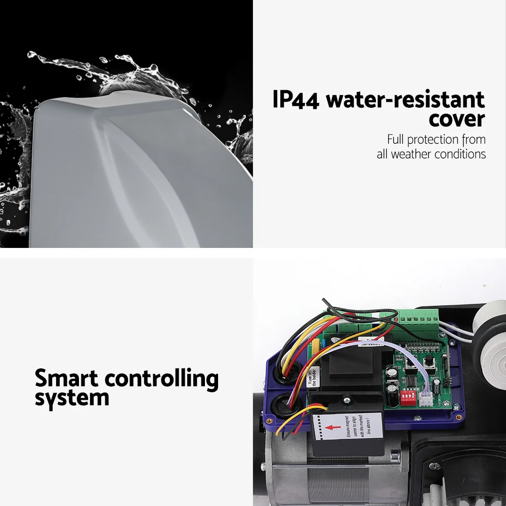 LockMaster 4M 800KG Solar Gate Opener Kit with Safety Stop, Auto-Close, 3 Remotes, IP44 Weather-Resistant Control Box