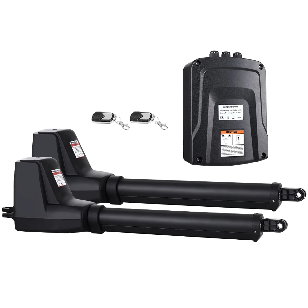 Say goodbye to the hassle of manual gate operation with the LockMaster Automatic Electric Gate Opener. Perfect for double swing gates up to 5.5m wide and 400kg per arm, this powerful 24V system ensures smooth operation even during power outages. With high-quality aluminium swing arms, a weatherproof control box, and a 30m range remote control, convenience and durability are guaranteed. Easy installation with all necessary hardware included. Plus, enjoy peace of mind with a 1-year warranty.