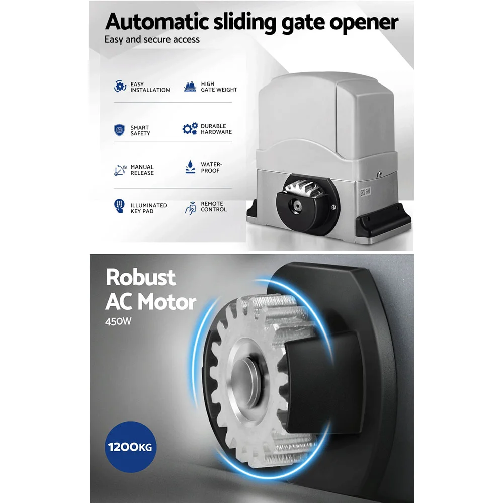 LockMaster 1200KG Electric Sliding Gate Opener, 4M Length, 450W Motor, Auto-Close, Safety Features, 3 Remotes