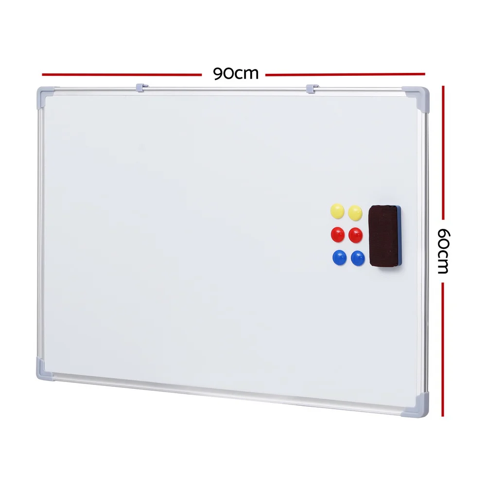 Magnetic Whiteboard 60x90cm Double-Sided Erase Board with Marker, Eraser, Tray & Magnets for Home Office School
