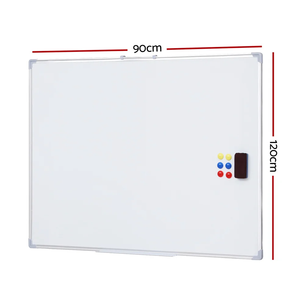 Magnetic Whiteboard 90x120cm Double-Sided Steel Dry Erase Board with Wheels, Marker, Eraser, Magnets, Tray