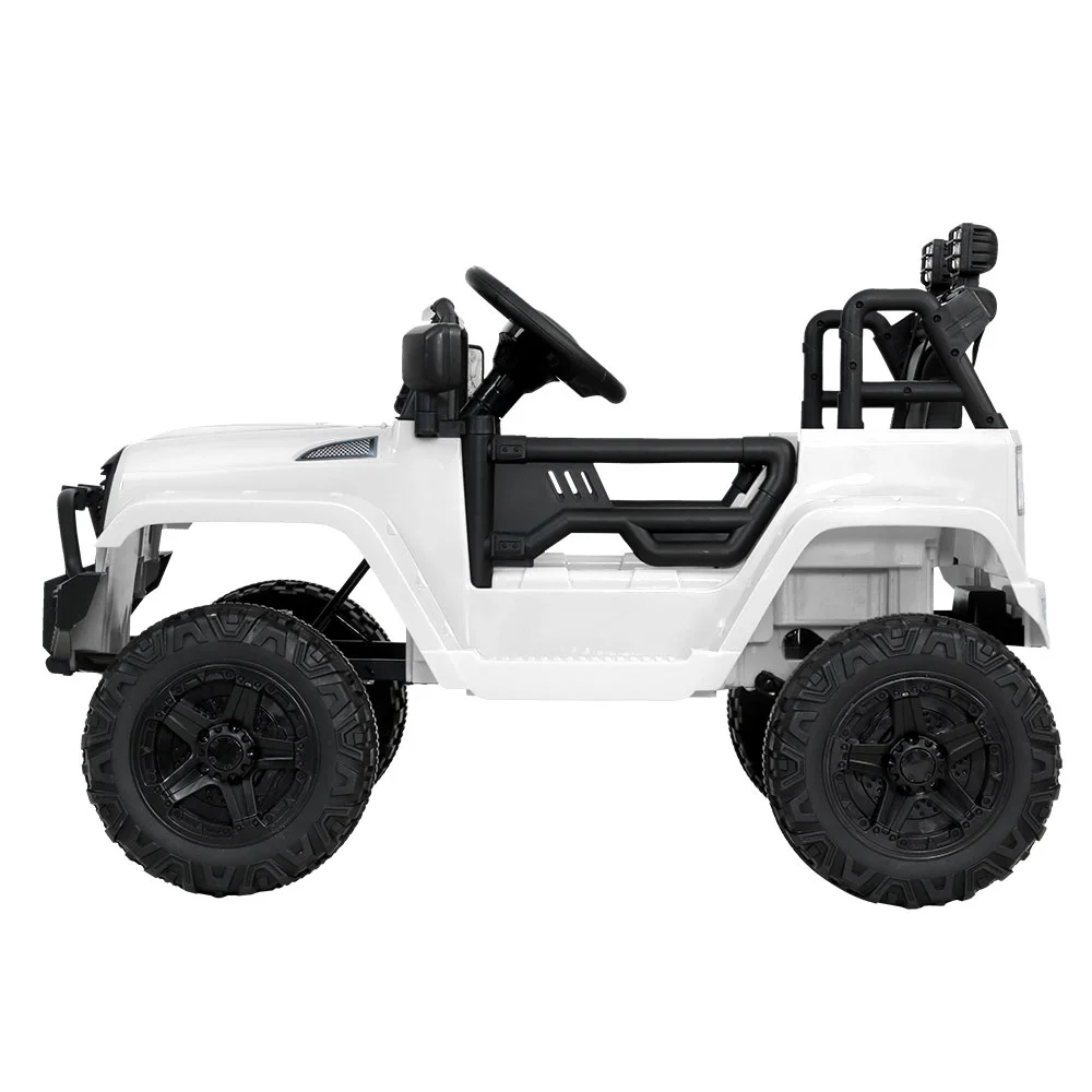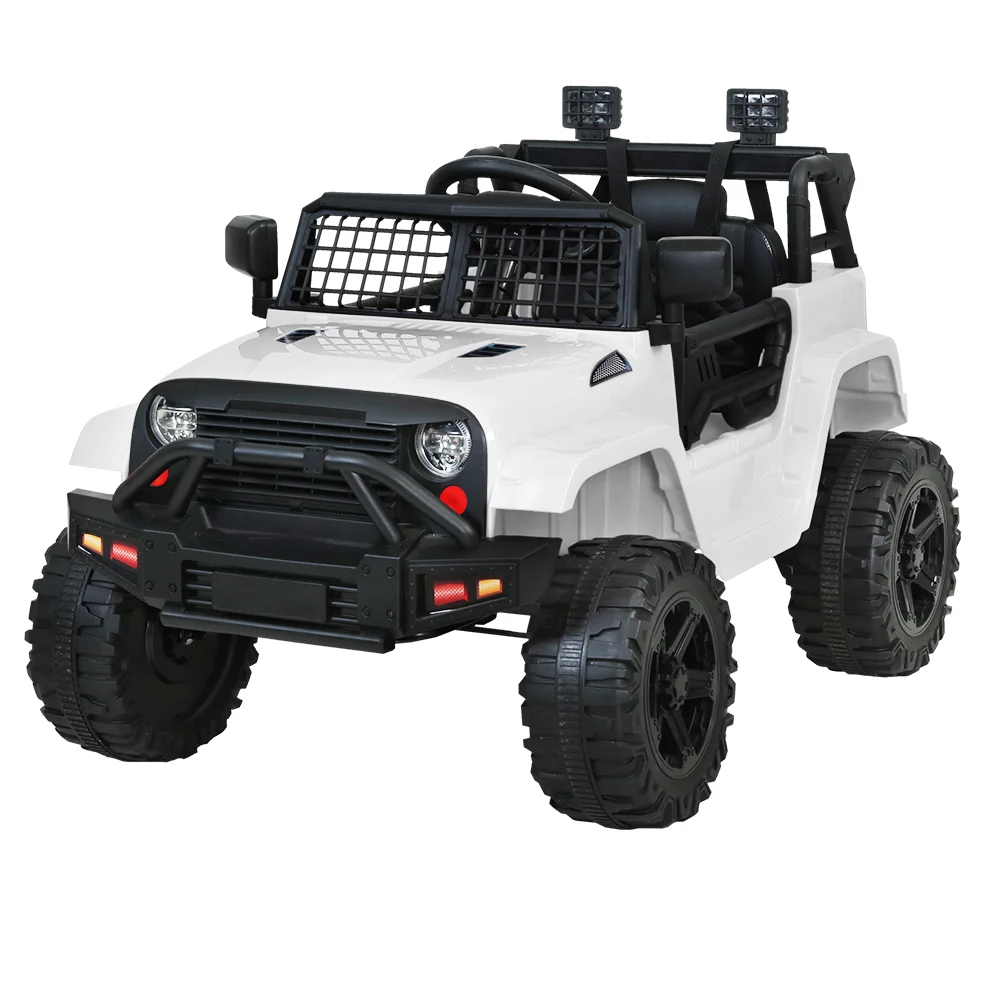 Rigo Kids Electric Ride-On Jeep Toy Car, 12V, White - Remote Control, Safety Belt, Twin Motors, Music, Ages 3+