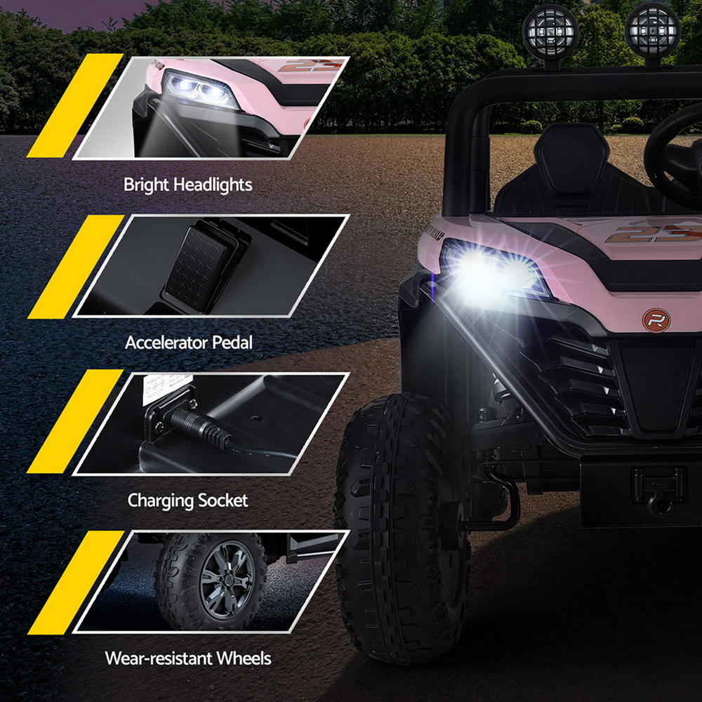 Rigo Kids Ride On Car - Pink Electric Toy with Headlights, Music, Remote Control, Safety Seat Belt, 3+ Years, 40kg Limit