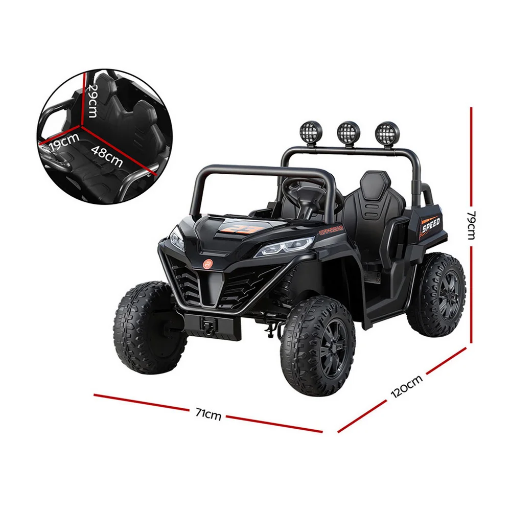 Rigo Black Kids Ride-On Car: Electric Toy with Remote, Headlights, Music, Safety Belt, 3+ Years, 120cm, 40kg Capacity