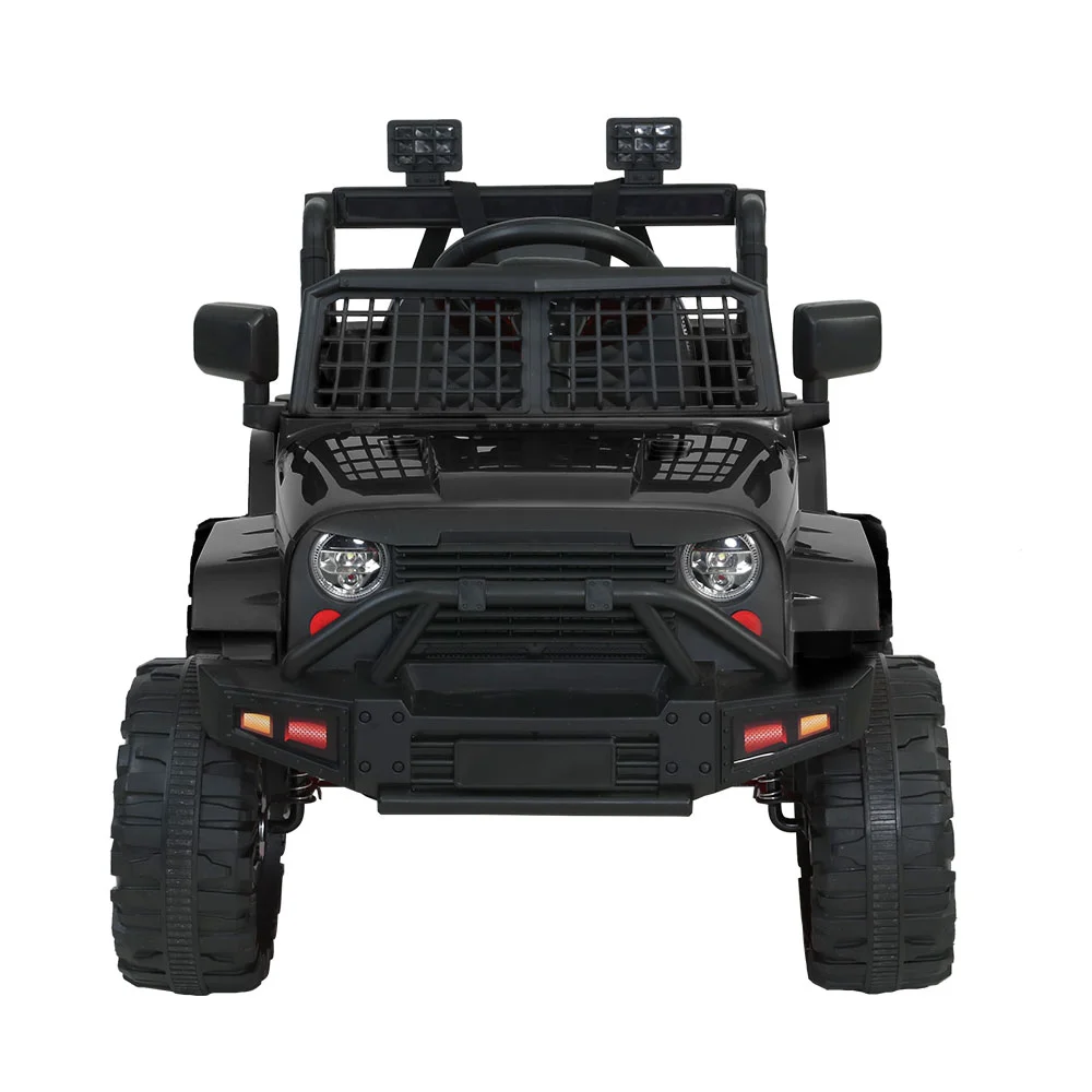 Rigo Kids 12V Black Electric Jeep Ride-On Car with Remote, Safety Belt, Twin Motors, Music & LED Lights, Ages 3+