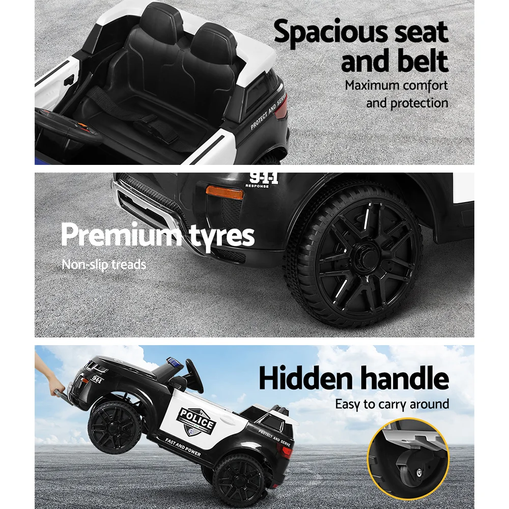 Rigo Kids Electric Ride On Patrol Police Car - Black, Remote Control, Music, Horn, Safe & Fun, 3-5km/h, 3+ Years