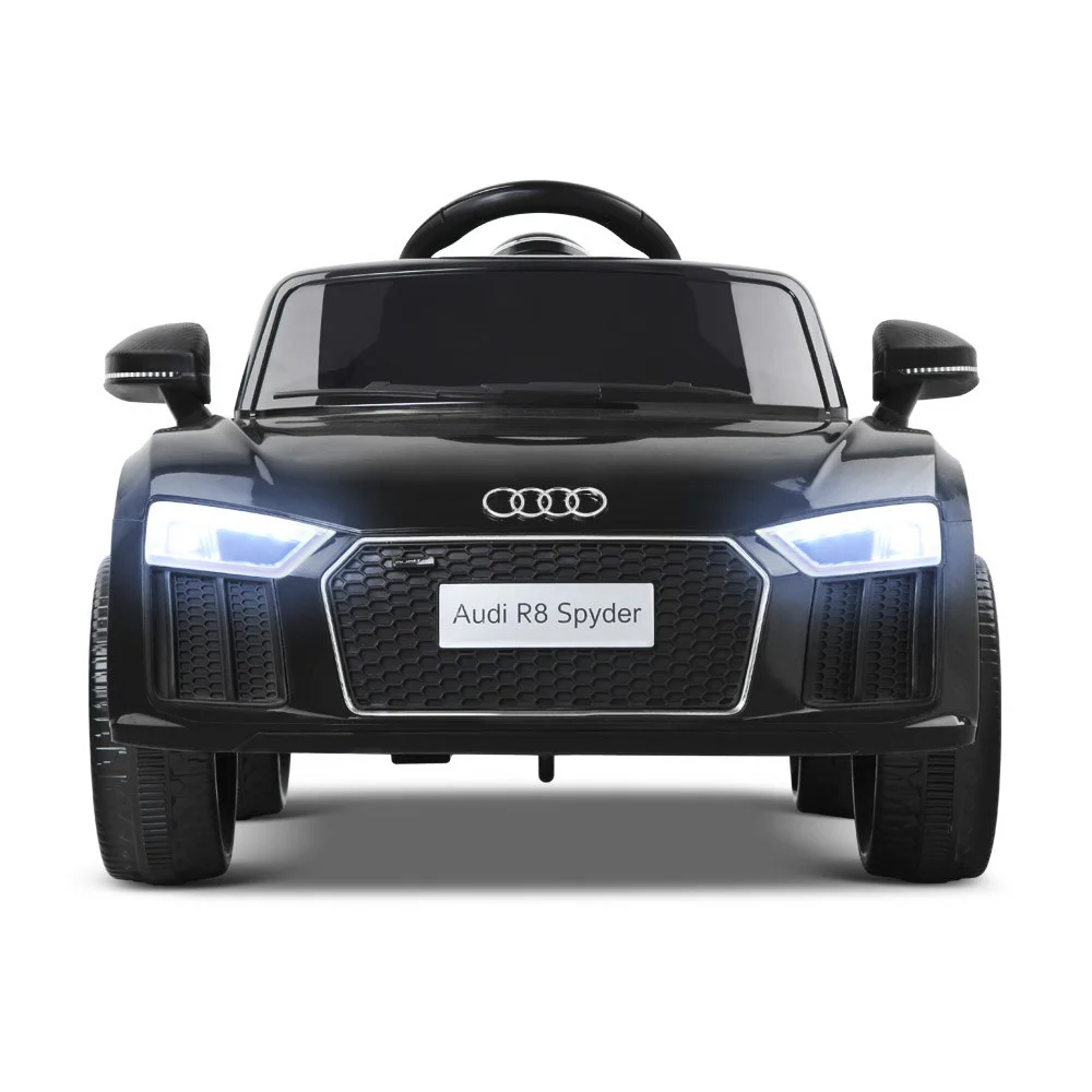 Audi R8 Spyder Kids Ride-On Car: Rigo Licenced Electric Sports Toy, Black, Remote Control, Music, Safety Belt, Ages 3+