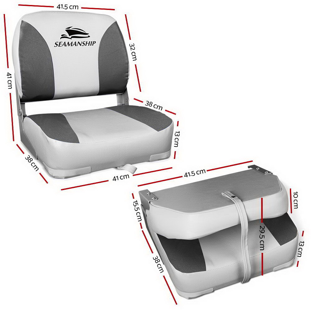 Seamanship Folding Boat Seats, Heavy Duty Marine-Grade, 52x35x45cm, Grey/Charcoal, All-Weather, UV Resistant, Set of 2