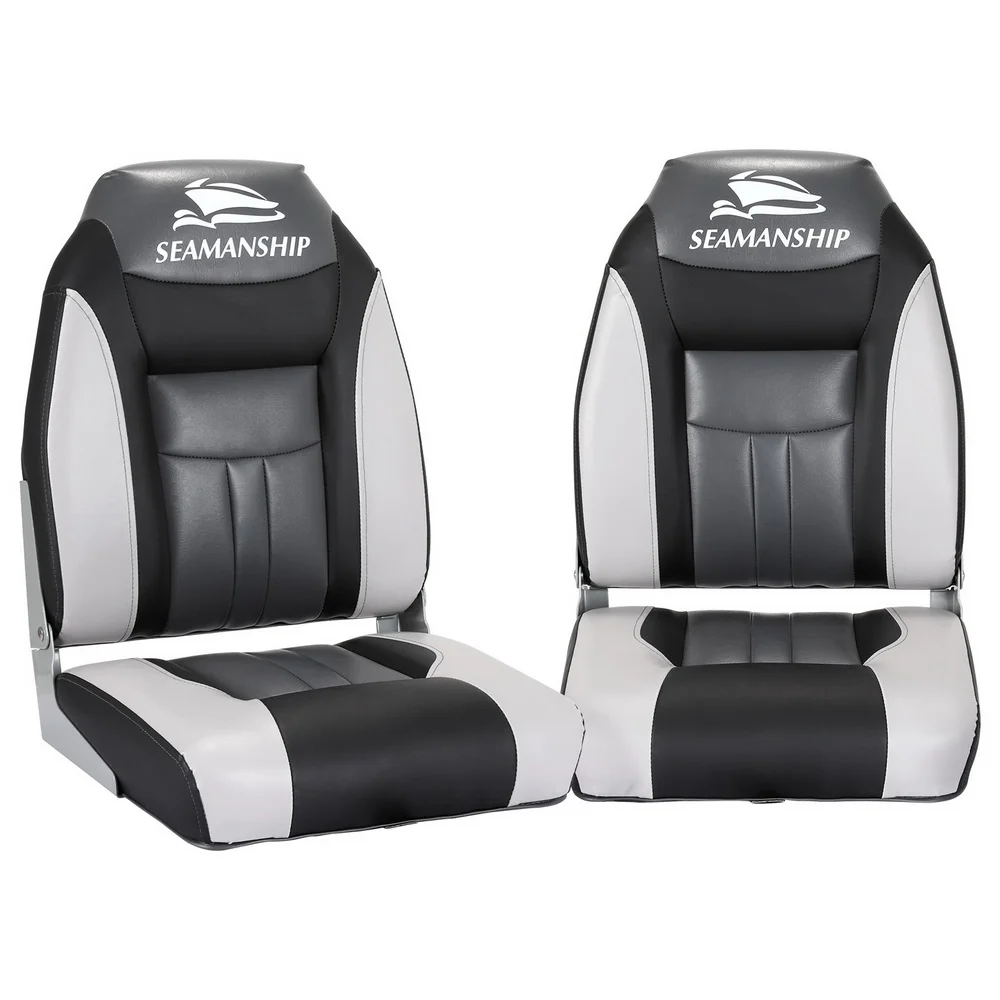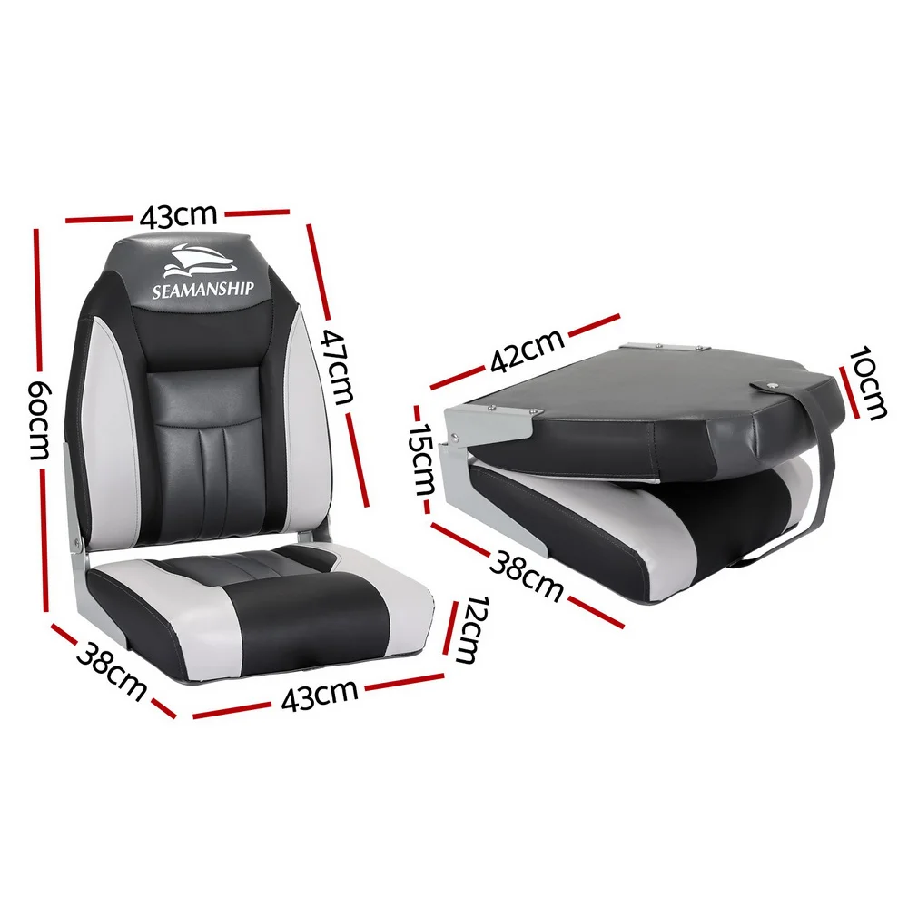 Seamanship Folding Boat Seats, Heavy Duty Marine-Grade, 52x35x45cm, Grey/Charcoal, All-Weather, UV Resistant, Set of 2