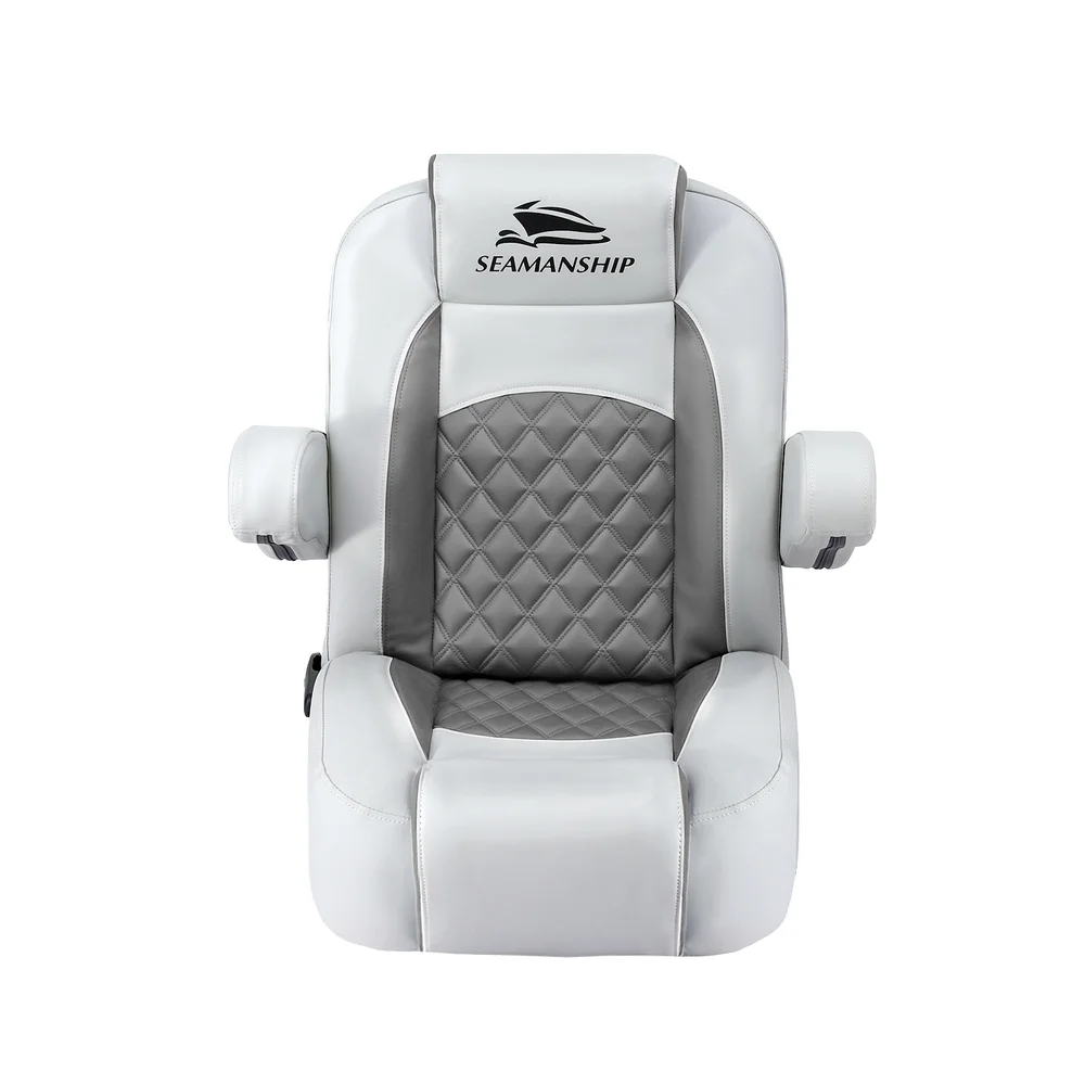 Experience first-class comfort on every voyage with the Seamanship Reclining Captain Boat Seat. Featuring a plush 19cm thick high-density foam cushion and adjustable armrests, this premium seat reclines smoothly from 90° to 155° for personalised relaxation. The marine-grade PVC leather resists water, salt, and sun, while the sturdy iron frame supports up to 136kg for lasting durability. With its spacious, ergonomic design in deep grey or deep blue, easy assembly, and effortless maintenance, this seat is the stylish and practical upgrade your boat deserves.