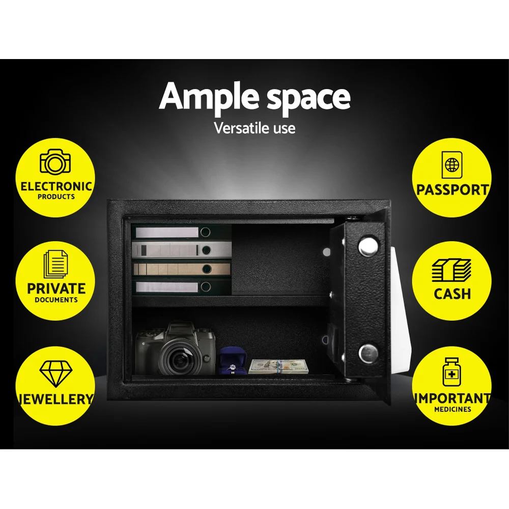 UL-TECH 8.5L Digital Security Safe Box - Steel, 31x20x20cm, Twin-Bolt Lock, Alarm, Wall-Mountable, Black Finish