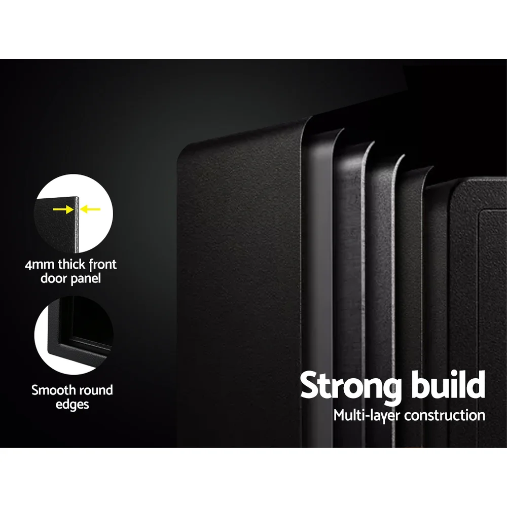 UL-TECH 8.5L Digital Security Safe Box - Steel, 31x20x20cm, Twin-Bolt Lock, Alarm, Wall-Mountable, Black Finish