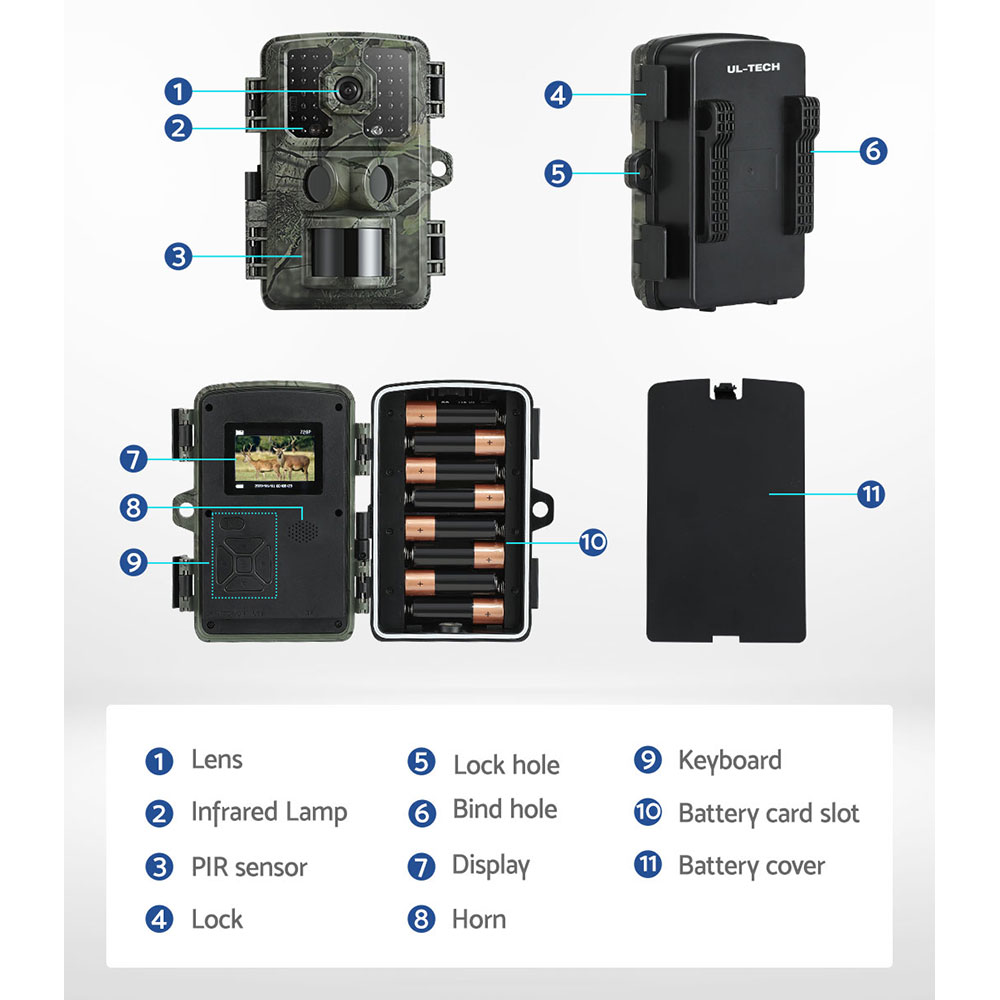 UL-TECH 4K 16MP Trail Camera - Night Vision, PIR Motion Detection, IP66 Waterproof, 90° Wide Angle, Camouflage Design