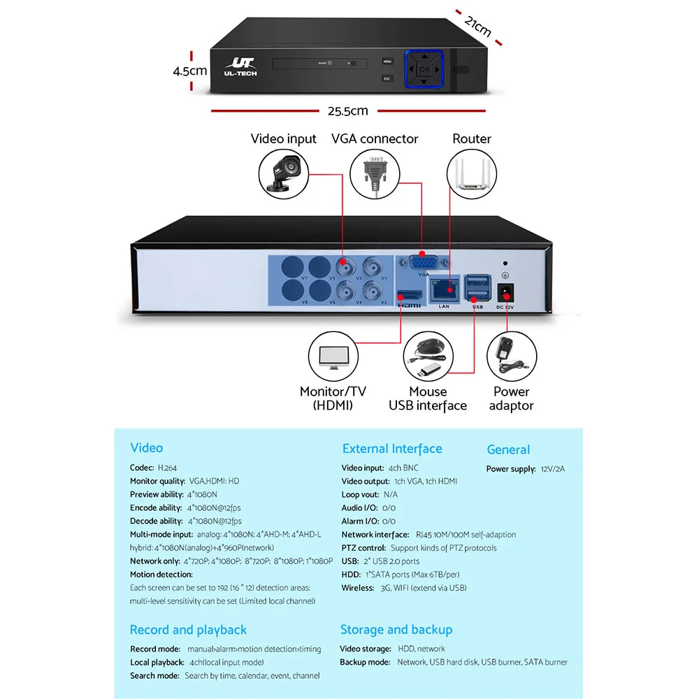 Model: CCTV-4C-4S-BK-2TBrand: UL-TECHLocation: Melbourne WarehouseEan: 9350062253571