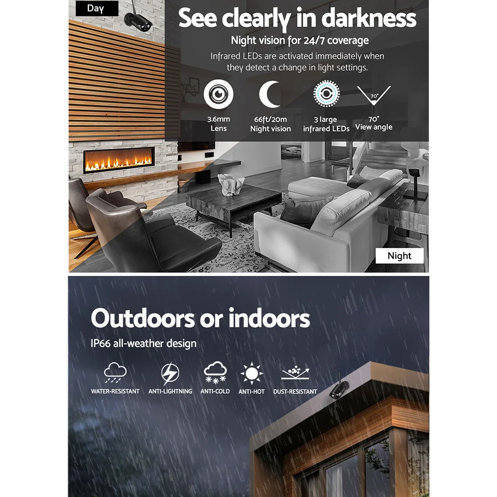 UL-TECH 3MP Wireless CCTV Bullet Cameras (2-Pack) - Outdoor/Indoor, IP66, P2P, H.264+, IR-CUT, Easy Install