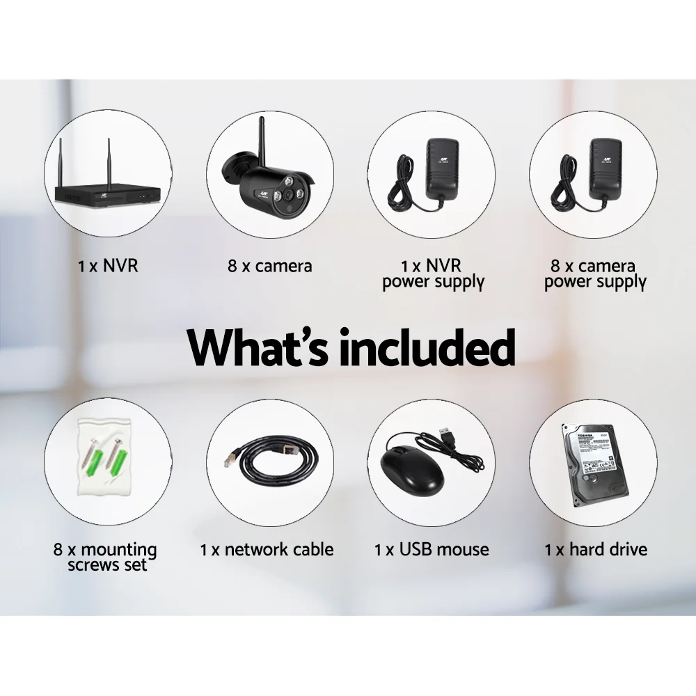 UL-TECH Wireless CCTV Security System: 8CH NVR, 8 Cameras, 3MP Full HD, Night Vision, Two-Way Audio, IP65 Waterproof