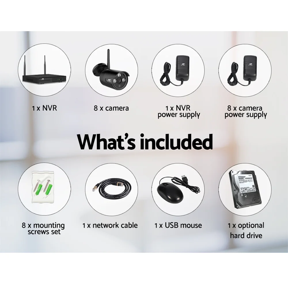 UL-TECH 8CH Wireless CCTV System: 8 3MP Bullet Cameras, 1TB HDD, Night Vision, Motion Detection, Remote Access