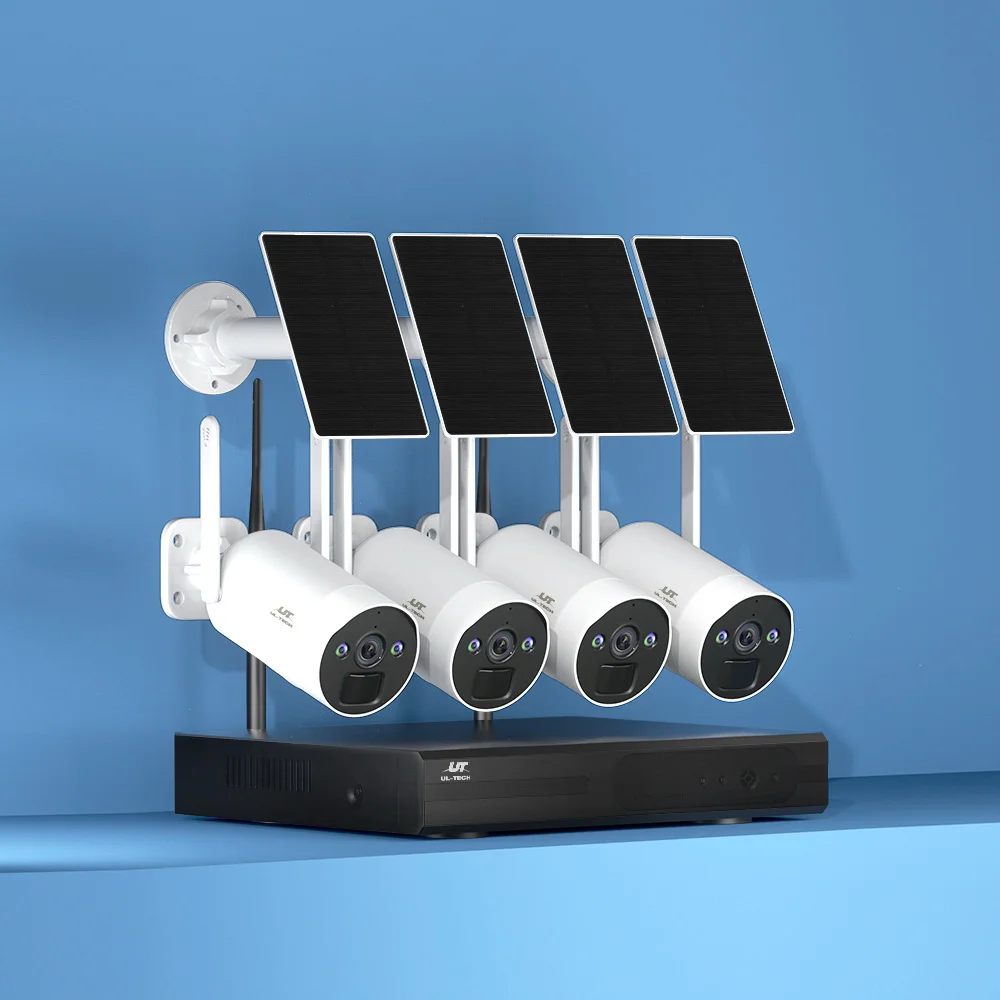 UL-TECH 4MP Wireless Solar CCTV Security Cameras, 8CH NVR, IP65 Waterproof, 2-Way Audio, Smartphone Access