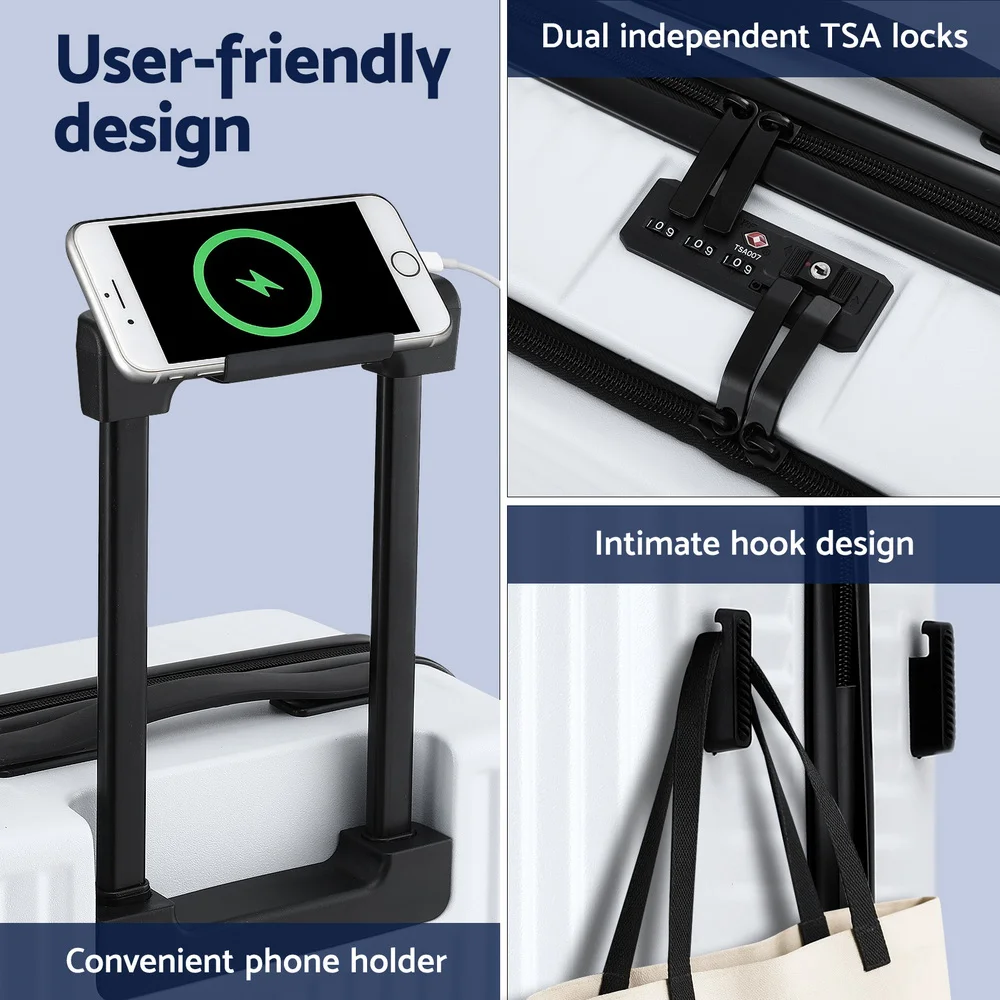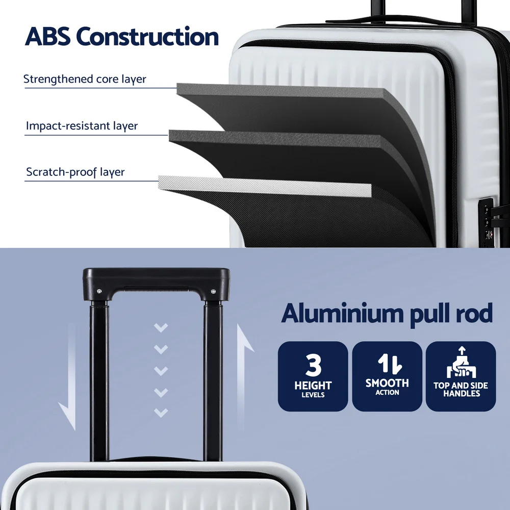 Wanderlite 20" White Carry-On Luggage - ABS Material, Front Pocket, Laptop Compartment, Dual TSA Locks, Spinner Wheels