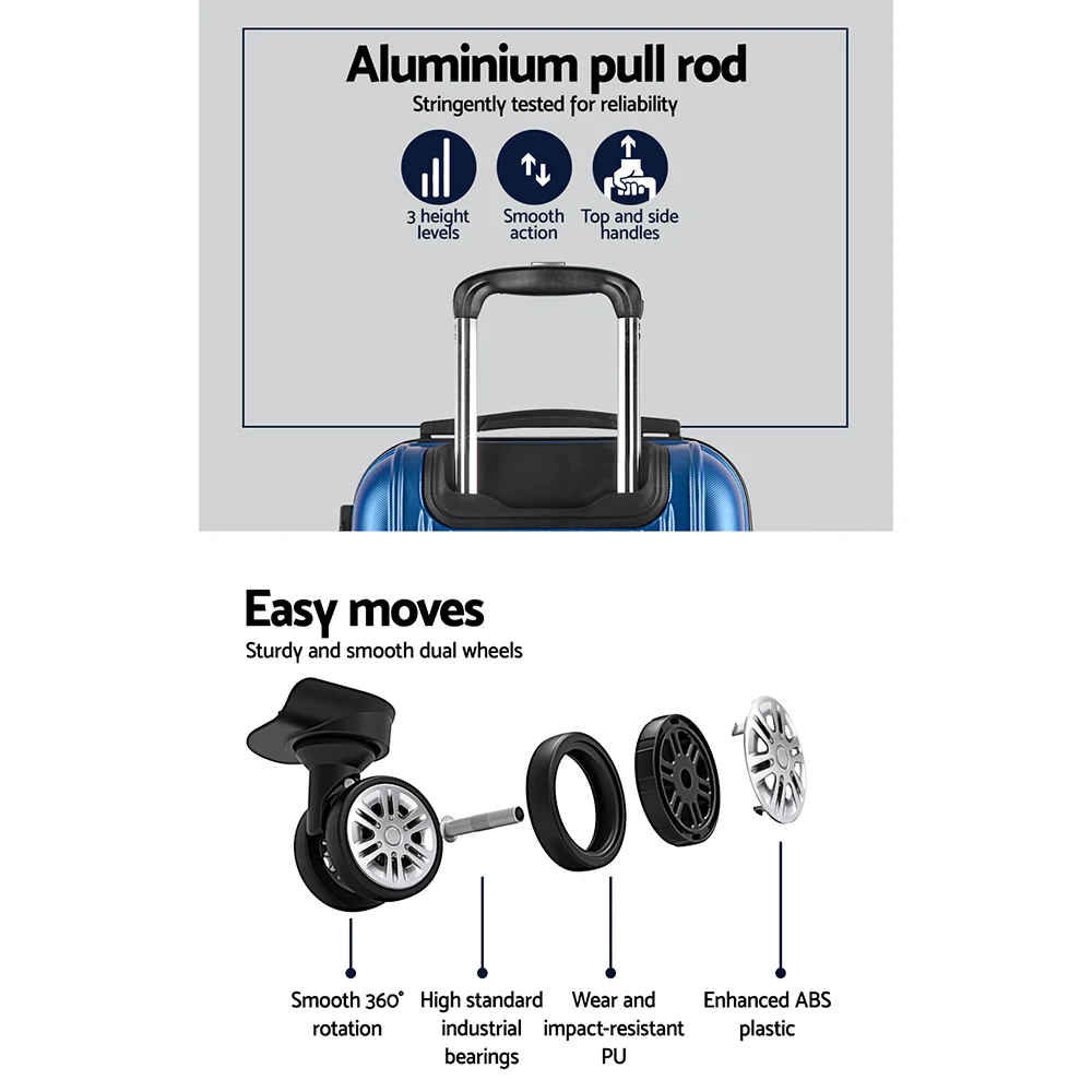 Wanderlite 2pcs Luggage Trolley Set, ABS Hard Case, 20" & 28", Lightweight, Blue, Smooth Wheels, TSA Locks