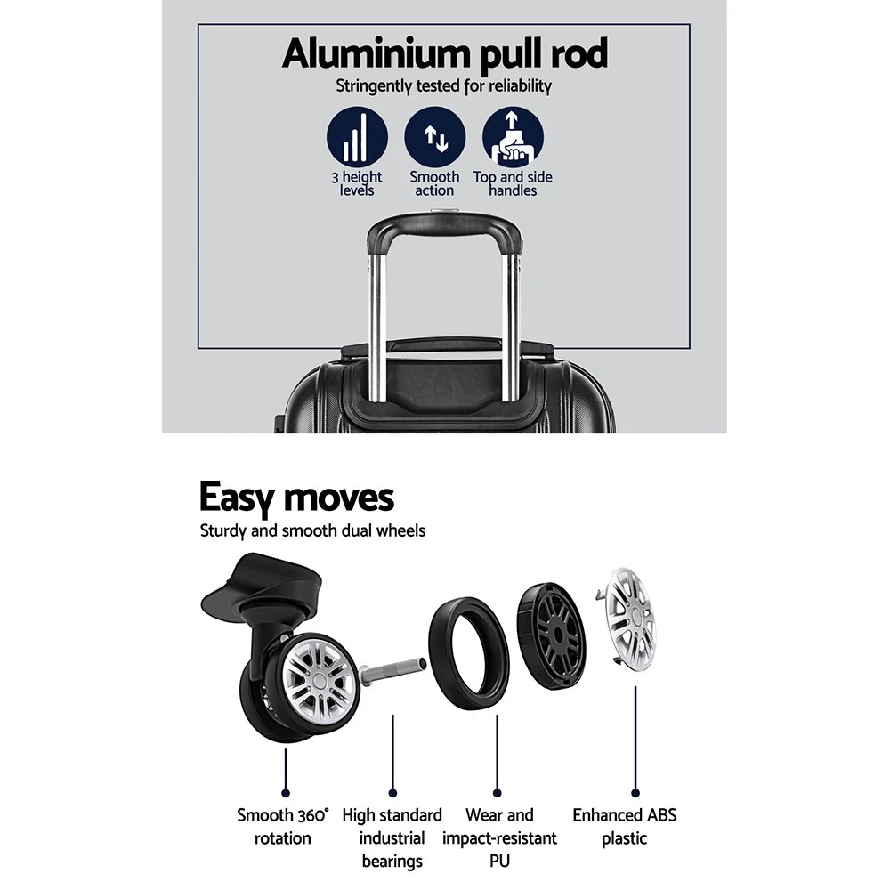 Wanderlite Luggage Trolley Travel Set, ABS Hard Shell, 20" Carry On, Black, Lightweight, Secure Code Lock, 360° Wheels
