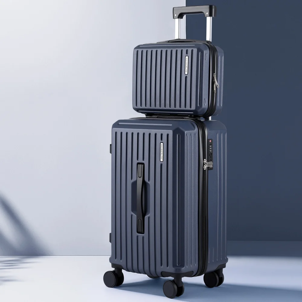 Wanderlite 2-Piece Trunk Luggage Set: 12" & 20" Navy, ABS Shell, TSA Lock, 360° Spinner Wheels, Smart Packing Features