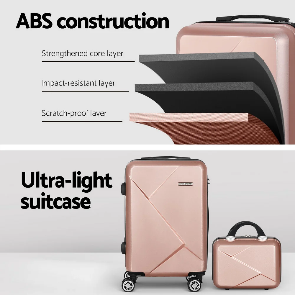 Wanderlite 2pc Luggage Set, ABS Hard Shell, 12" & 20", Rose Gold, Lightweight, TSA Lock, 360° Wheels, Travel Suitcase