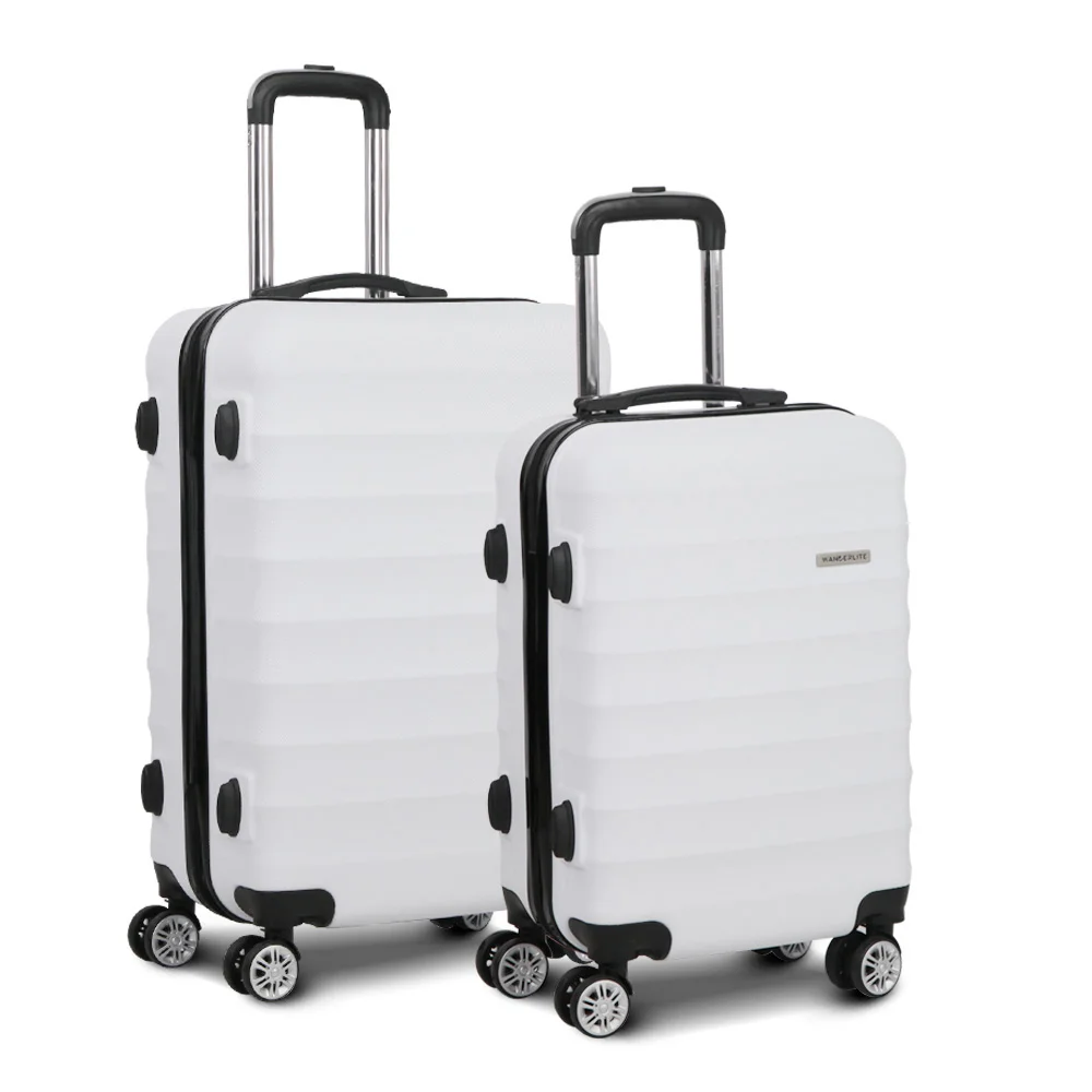 Wanderlite 2pcs Luggage Trolley Set, ABS Hard Shell, 20" & 28", White, TSA Lock, Lightweight, Travel Suitcase Combo