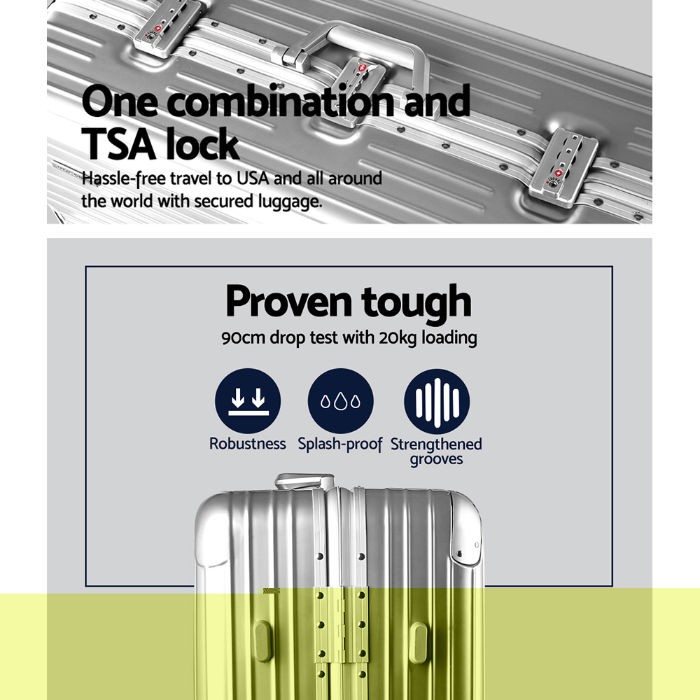 Wanderlite Luggage Trolley Set, Aluminium Frame, 28", Silver, TSA Lock, Lightweight, 360° Wheels, Travel Suitcase