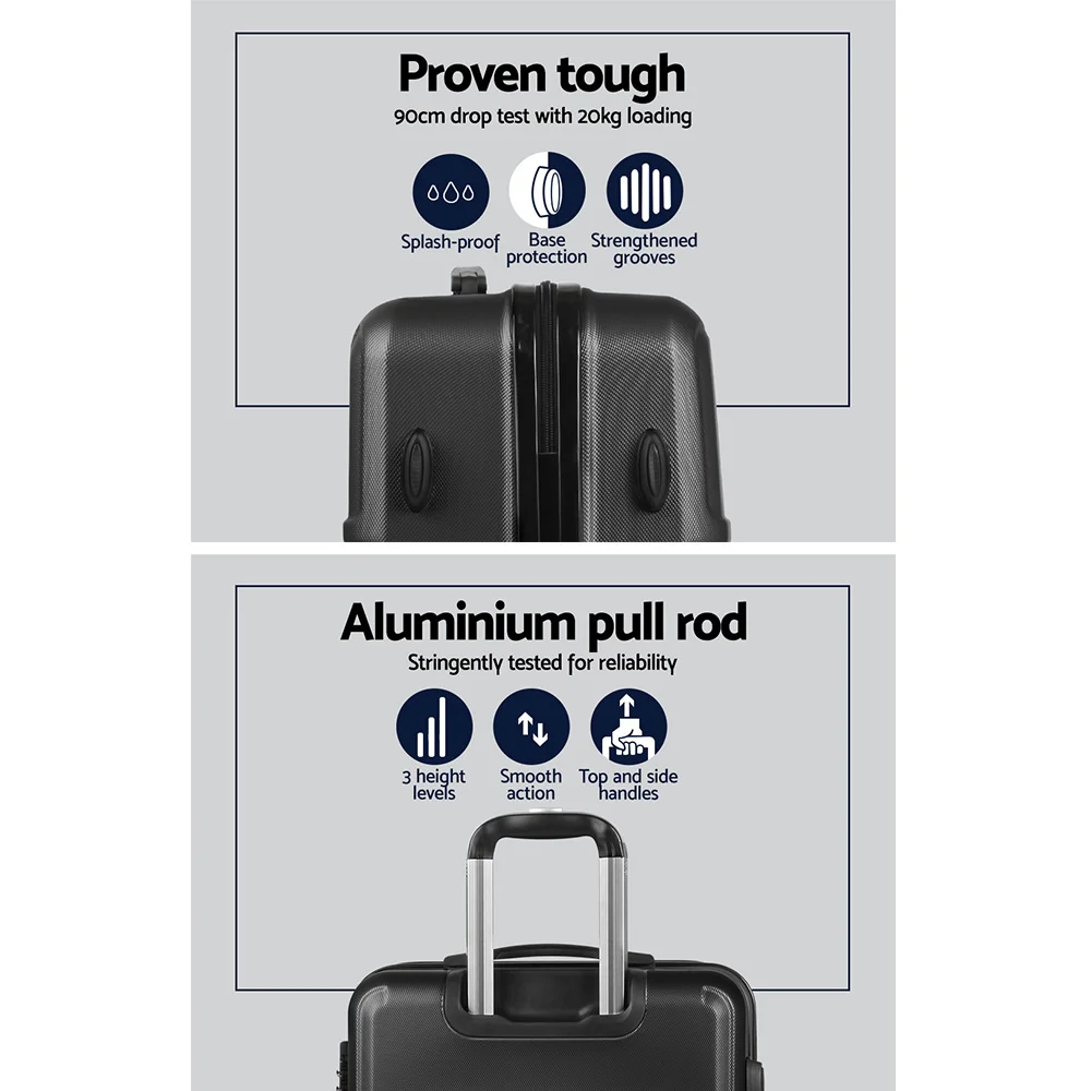 Wanderlite 2pc Luggage Trolley Set, ABS Hard Case, 20" & 28", Black, Lightweight, TSA Lock, Smooth Dual Wheels