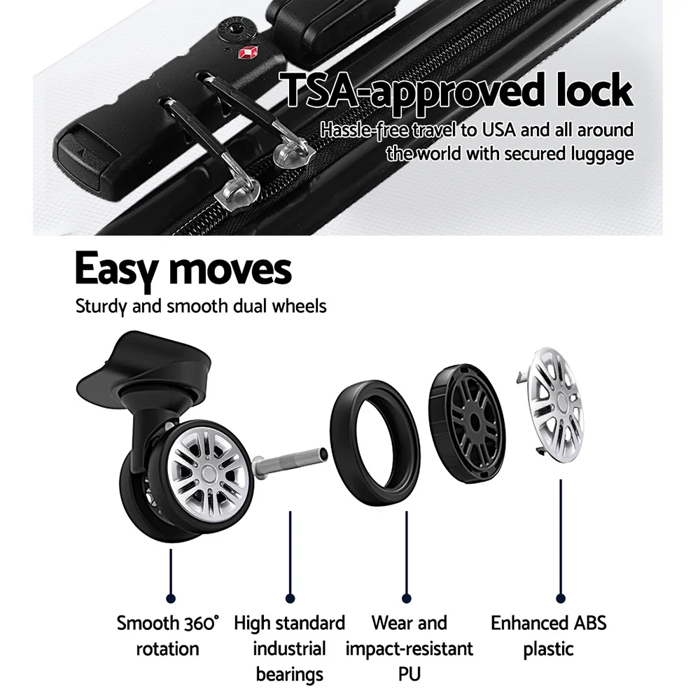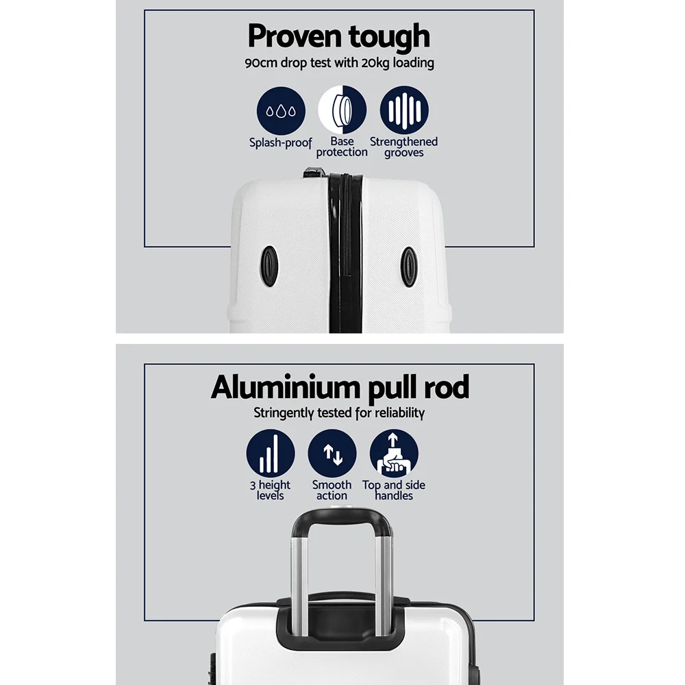 Wanderlite 3pc Luggage Trolley Set, ABS Hard Case, White, Lightweight, TSA Lock, Durable, 20"/24"/28" Sizes