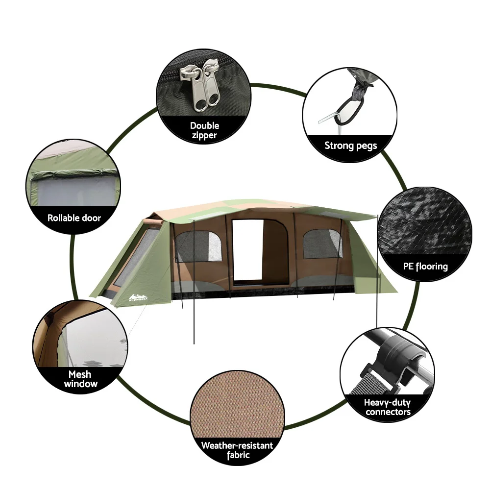 Weisshorn 12-Person Green Dome Tent - Spacious 3-Room Design, UV & Water-Resistant, Easy Setup with Carry Bag