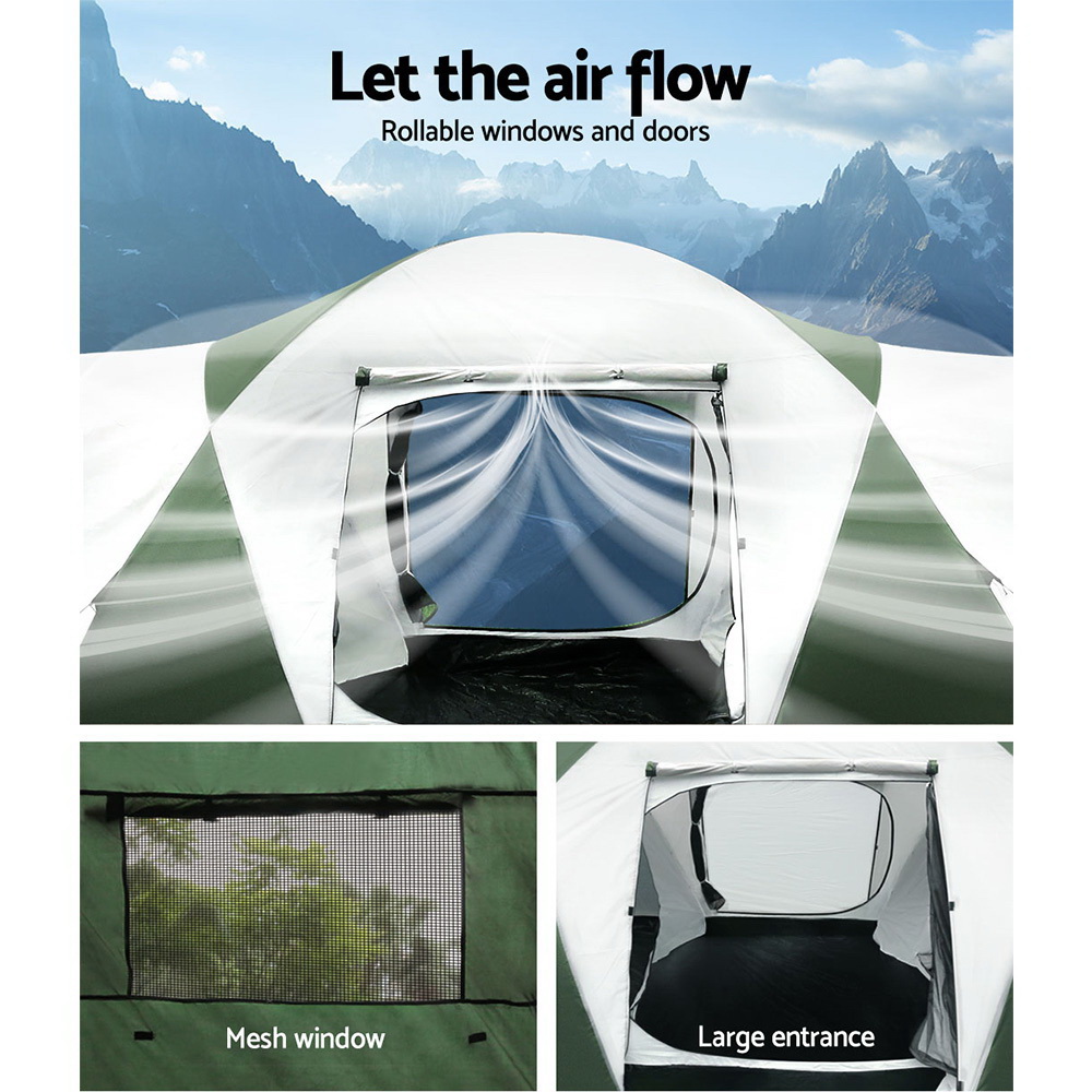 Weisshorn 10-Person Instant Up Camping Tent - UV Protected, Water-Resistant, 3 Rooms, Easy Setup, Green, 12kg