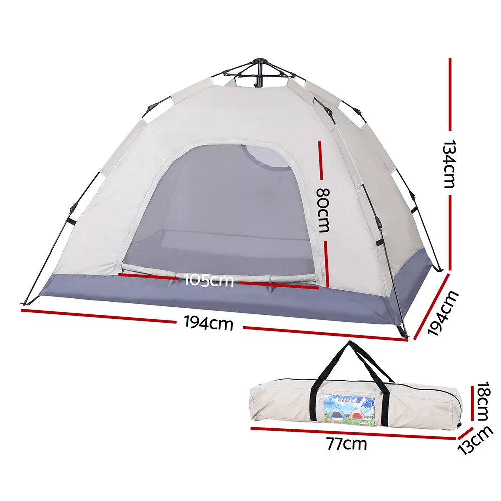 Weisshorn 2-3 Person Instant Pop Up Camping Tent, Water-Resistant Oxford Cloth, UV Protection, Beige, 194cm x 134cm