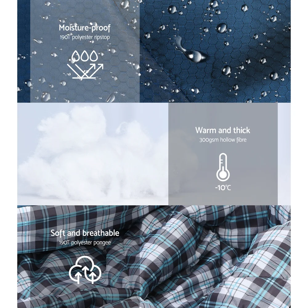 Weisshorn Double Sleeping Bag -10°C, 220x150cm, Convertible, Waterproof, with 2 Pillows, 300gsm Hollow Fibre Filling