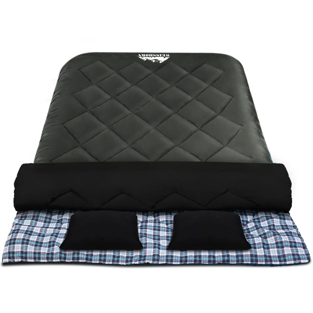 Weisshorn Double Sleeping Bag -10°C, 220x150cm, Convertible, Waterproof, with 2 Pillows, 300gsm Hollow Fibre Filling