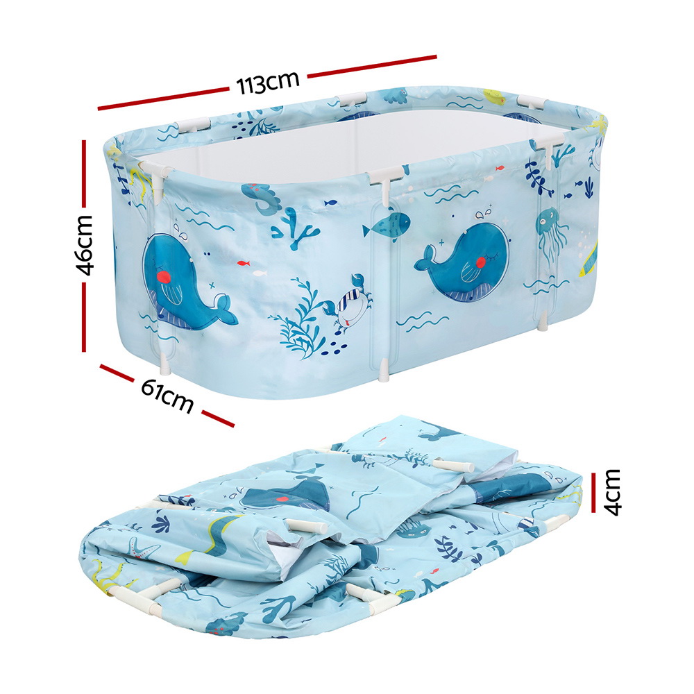 Weisshorn Foldable Bathtub 113x61cm Blue - PVC Spa Bucket with Insulation, Inflatable Cushion, and Easy Setup