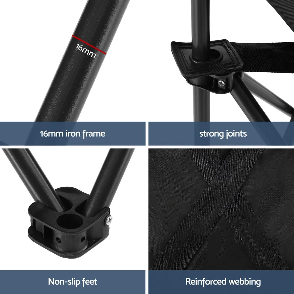 Weisshorn Grey Folding Camping Chairs 2pcs - Portable, Durable 600D Oxford, High Back, 100kg Capacity, Bonus Carry Bag