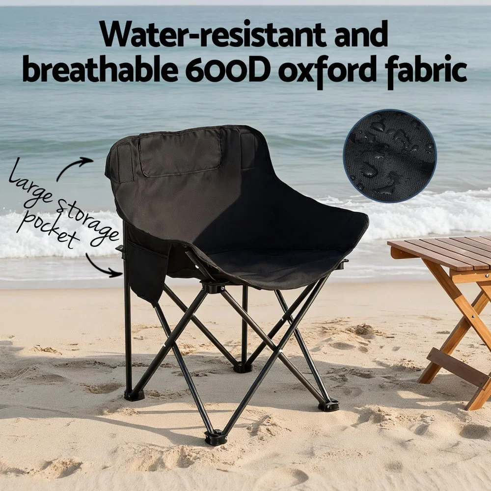 Weisshorn Black Folding Camping Moon Chair, 120kg Capacity, Durable 600D Oxford Fabric, Portable with Drink Holder