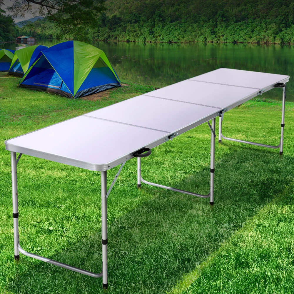Weisshorn 240CM Portable Folding Camping Table - Adjustable Heights, Aluminium Frame, Rust-Resistant, Lightweight