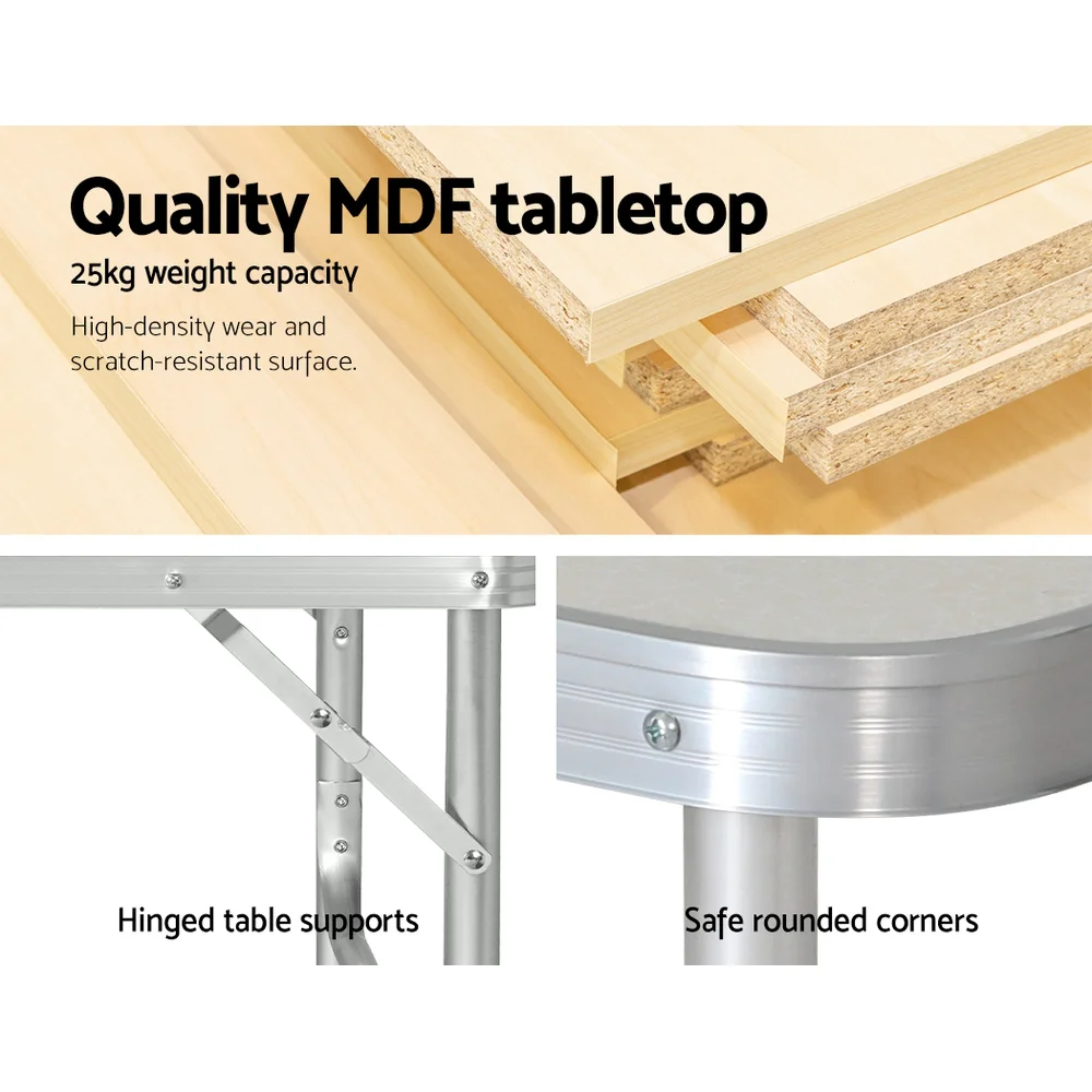 Weisshorn 240CM Portable Folding Camping Table - Adjustable Heights, Aluminium Frame, Rust-Resistant, Lightweight