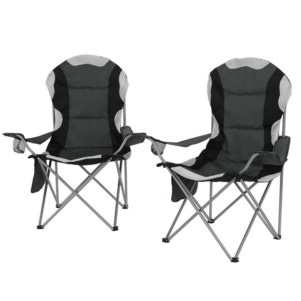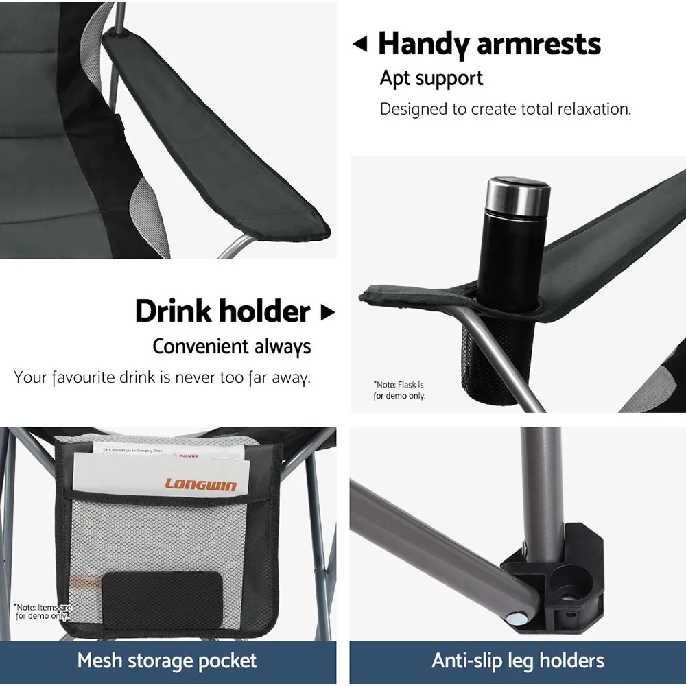 Weisshorn Grey Folding Camping Chairs 2pcs - Portable, Durable 600D Oxford, High Back, 100kg Capacity, Bonus Carry Bag