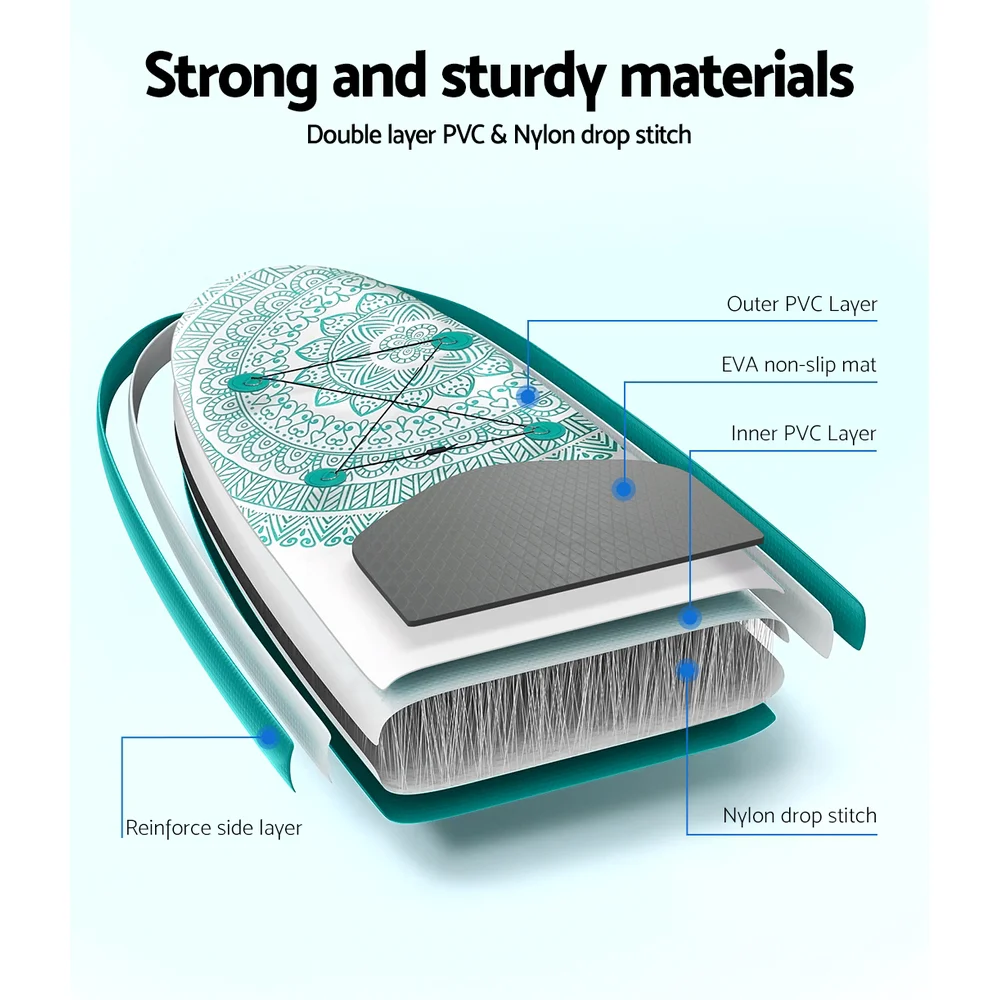 Weisshorn 10.6ft Inflatable SUP Kayak Paddle Board - UV-Resistant PVC, 150kg Capacity, Green, Includes Pump & Backpack