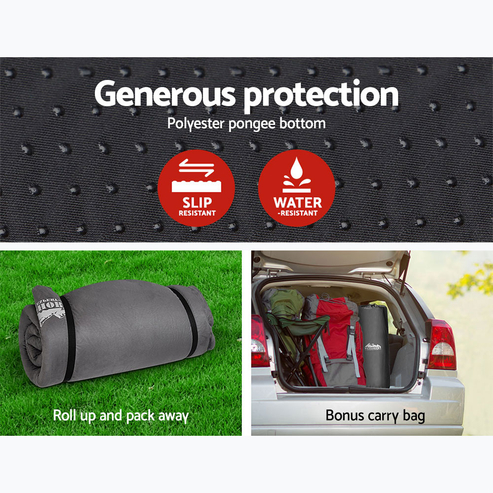 Experience unparalleled comfort on your camping adventures with the Weisshorn Self-Inflating Mattress. This double mat self-inflates in just 60 seconds, offering a plush 10cm thick sleeping surface made from high-density polyurethane foam. Wrapped in a faux suede top with an anti-slip bottom, it ensures stability and relaxation on any terrain. Lightweight and water-resistant, it rolls up easily for transport. Enjoy the great outdoors with the assurance of a restful night’s sleep.