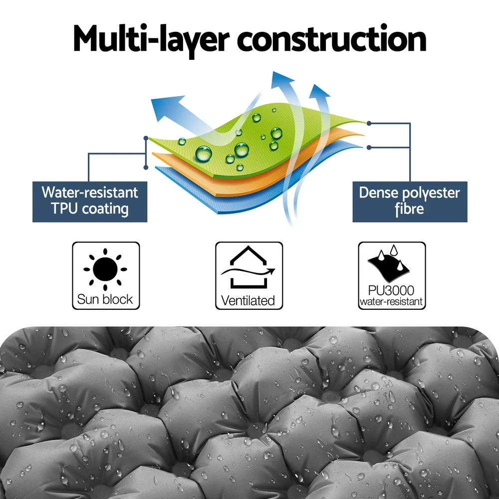 Weisshorn Self-Inflating Camping Mattress Grey | 9.5cm Thick Foam | Water Resistant | 187x66cm | Easy Setup & Carry