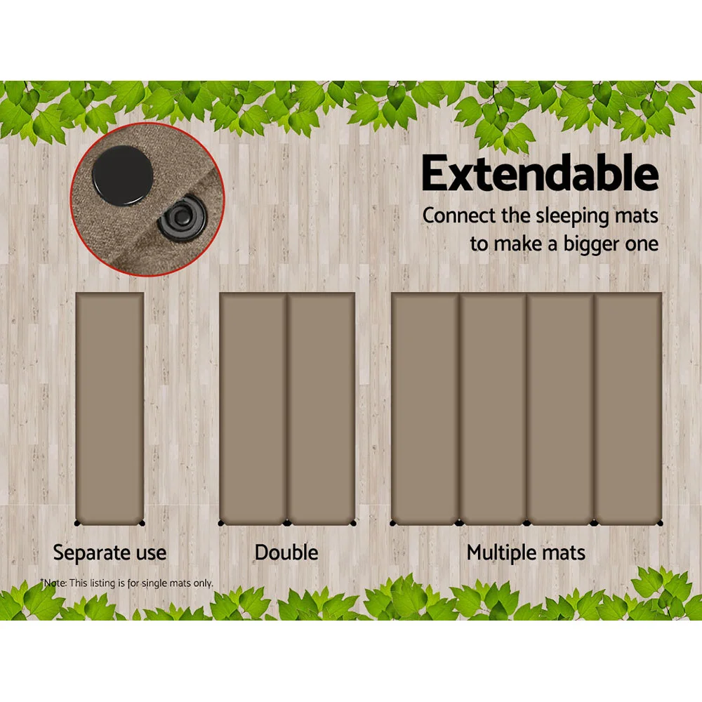 Experience unparalleled comfort in the great outdoors with the Weisshorn Self Inflating Mattress. This camping essential offers a 9.5cm thick polyurethane foam sleeping surface that self-inflates in just 60 seconds with two built-in valves. Featuring a faux suede top and an anti-slip polyester bottom, it ensures stability and comfort on any terrain. Easily connect multiple mats for a larger sleeping area, and store or transport conveniently with the included carry bag. Perfect for year-round camping adventures.