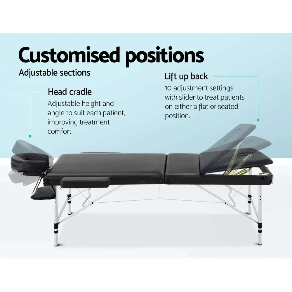 Wanderlite Zenses Portable Aluminium Massage Table, 60cm, Black - 3 Fold, Adjustable, Lightweight, with Carry Bag